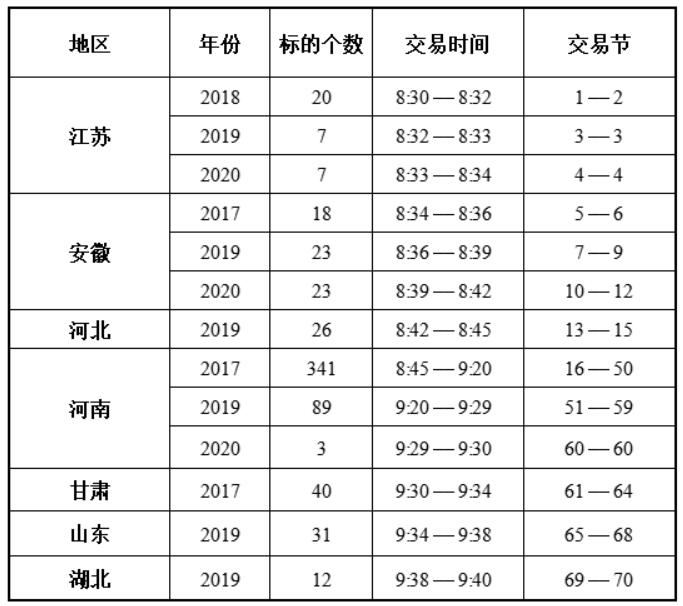 特别说明:每交易节最多10个标的,按60秒测算,若标的增减或竞价激烈,交易时间将随之变动,预估时间供参考。