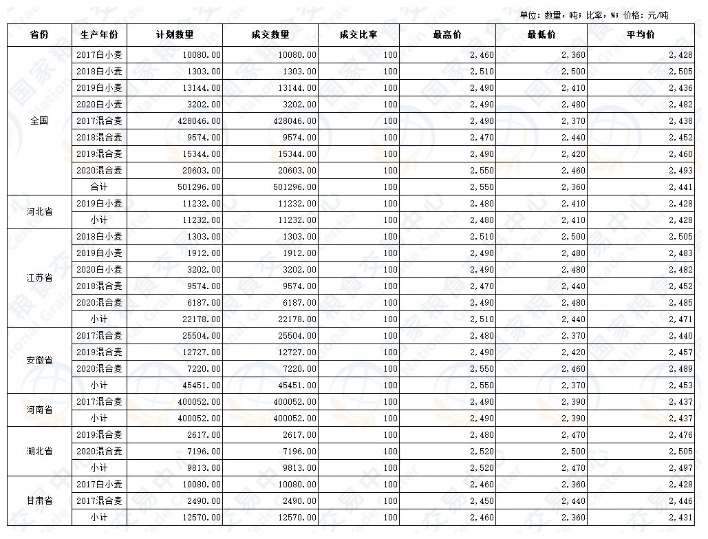 国家政策粮食交易结果