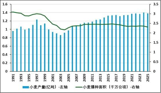 回望2025年,我国小麦生产成功实现“旱口夺粮”,保持了1.4亿吨以上的历史高产。