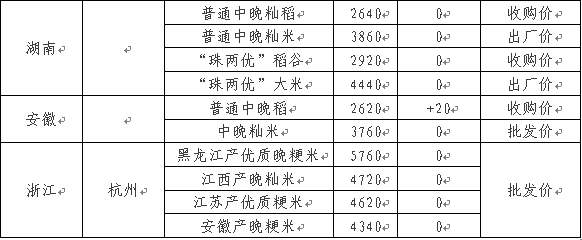 近期国内部分地区稻米行情 单位:元/吨