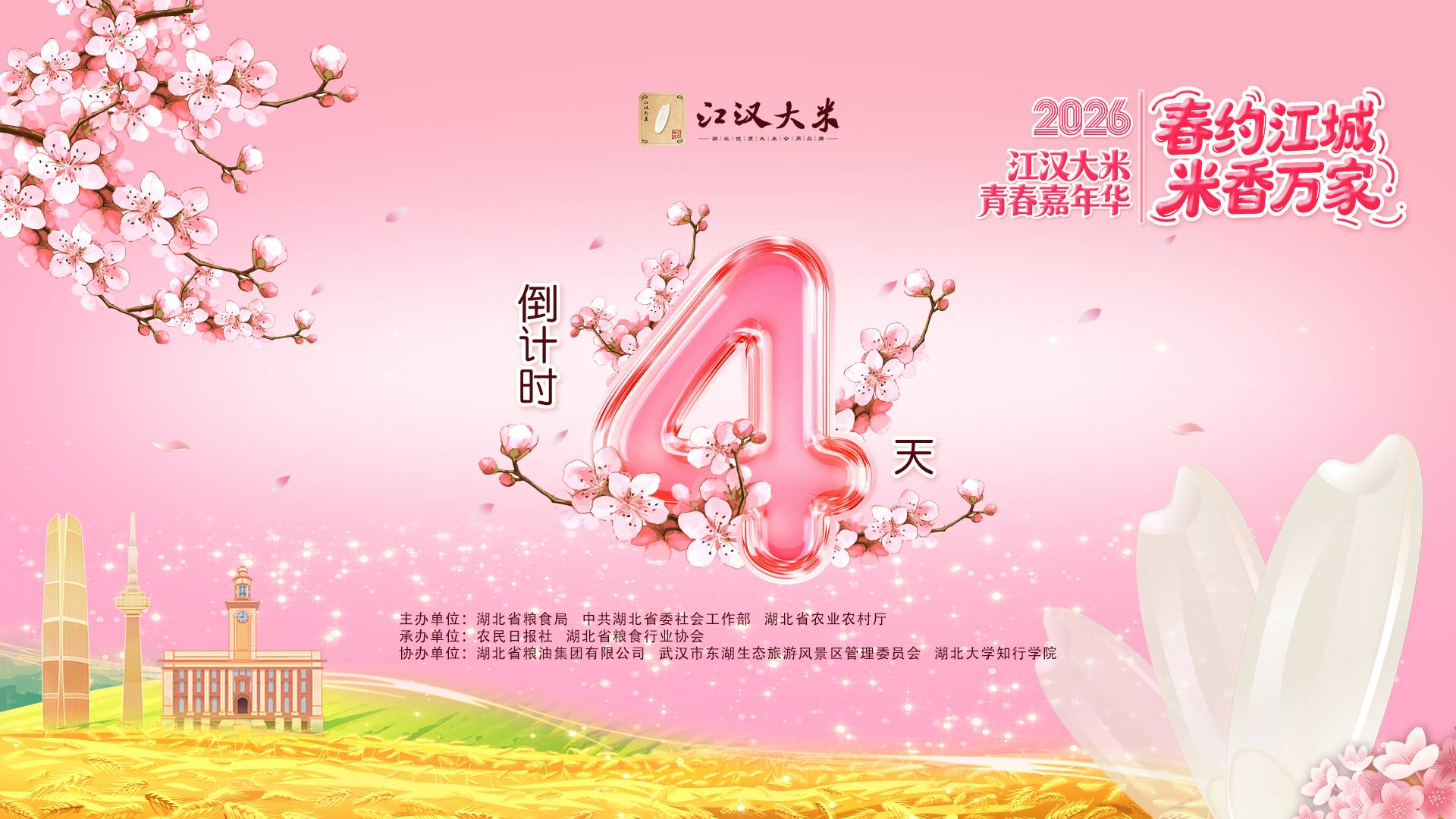 春赏百花,邂逅米香!3月10日,从湖北省粮食局获悉,“春约江城 米香万家”2026江汉大米青春嘉年华活动,3月14日将在武汉东湖樱花园启幕。这一场融合江汉米食文化与春日花舞人间的青春嘉年华,将解锁“赏花+米食”的双倍美好味蕾体验,邀您共赴春日之约。