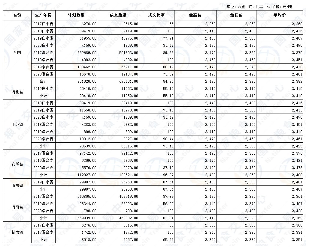 2026年4月8日最低收购价小麦竞价销售交易结果