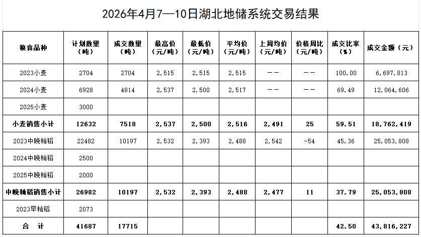 本周地储交易平台投放各类粮油41687吨,成交17715吨,成交率42.5%。其中销售2023年小麦2704吨,成交均价2515元/吨;2024年小麦4814吨,成交均价2517元/吨;2023年中晚籼稻10197吨,成交均价2488元/吨,环比下跌54元/吨。